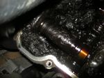 Anyhow, I had the same symptoms as kbruback. I pulled the valve covers (an incredible pain to access the rear cover - i mean, a REAL pain), and dropped the pan. Crap everywhere! I could barely see cam lobes. So, I had a choice to make - put things together and AutoRx, or manually clean and then AutoRx. Because I could literally scoop the crud out with a spoon around the cams, and the pickup screen was not even visible, I couldn't wait 3-6k mi for a gentle cleaning. So (for better or worse), I went for it. I spent the better part of the last four weekends dissassembling and cleaning, starting with a spoon, then tongue depressors, then toothbrushes, q-tips, and rags, all the time using diesel as a solvent. I did this to the heads and the pan/sump/pickup. The parts I can reach are pretty clean and the pickup looks new. Looking up to the crank, it looks reasonable - just varnish, from what I can tell. The intake manifold is glazed with oil residue, and small puddles of oil can be seen on the backside of the valves. No wonder I was blowing smoke.